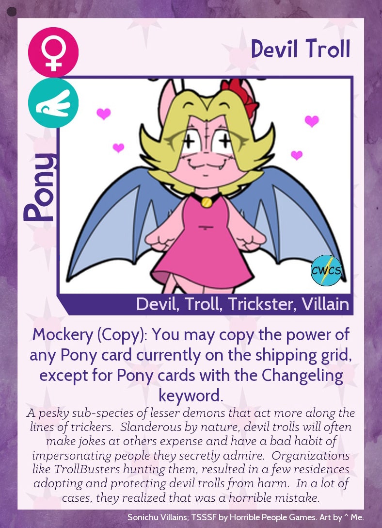 Revision as of 03:27, 10 July 2022 by Hurtful Truth Level (talk | contribs) (Category:TSSSF cards Category:TSSSF Pony cards)